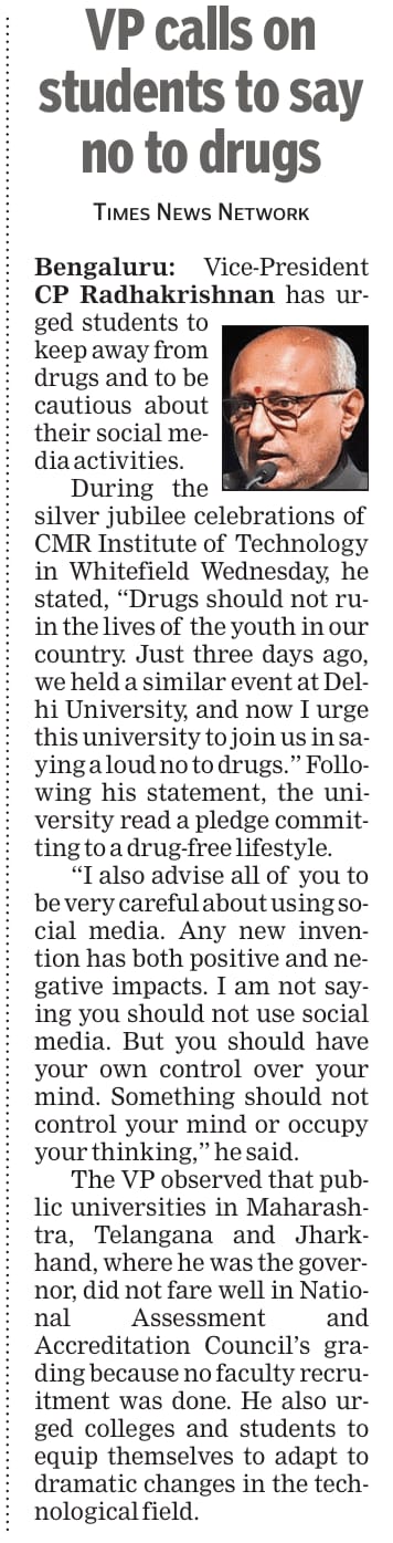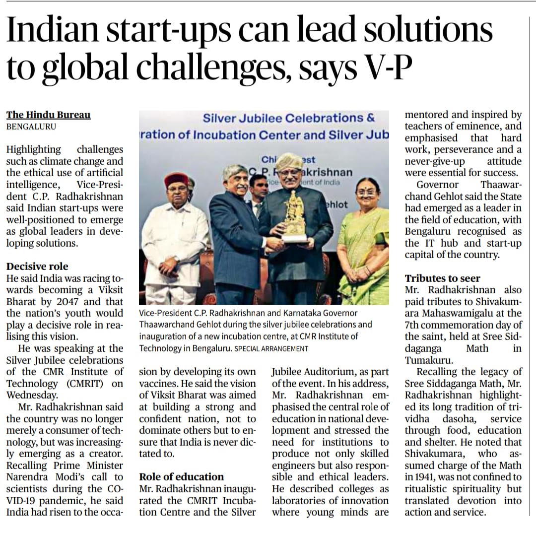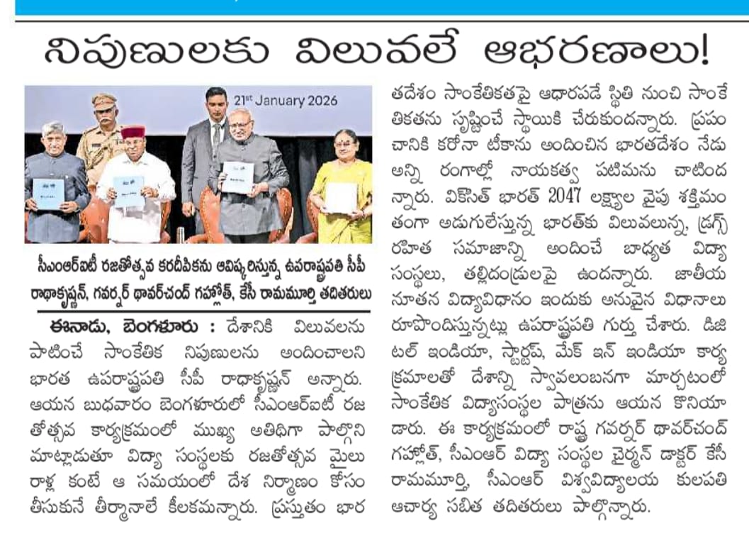 Educational institutions key to nation-building Vice President Radhakrishnan at CMRIT Silver Jubilee Times-of-India 01-2026.jpeg115.92 kBJPEGView/Open