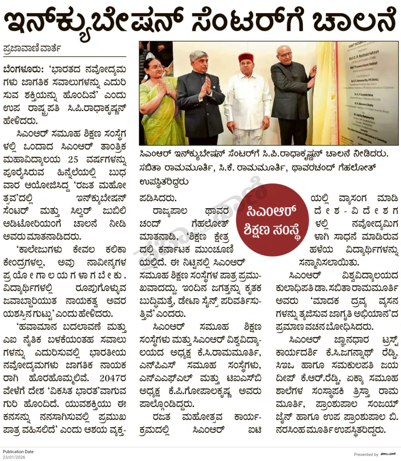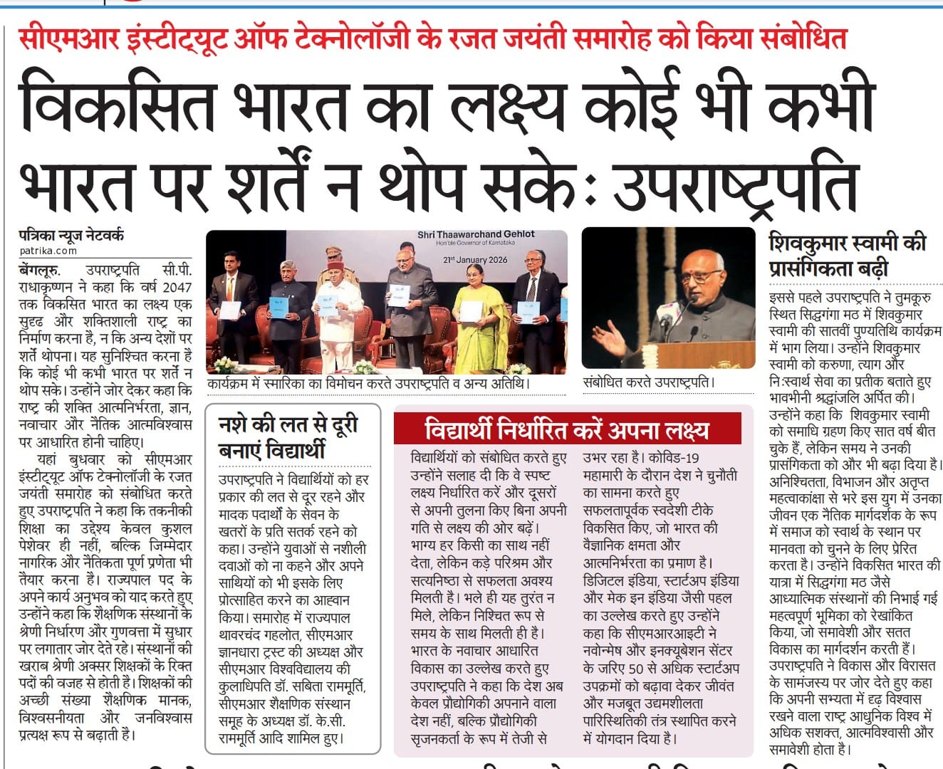 Educational institutions key to nation-building Vice President Radhakrishnan at CMRIT Silver Jubilee Rajasthan-Patrika.jpeg324.41 kBJPEGView/Open